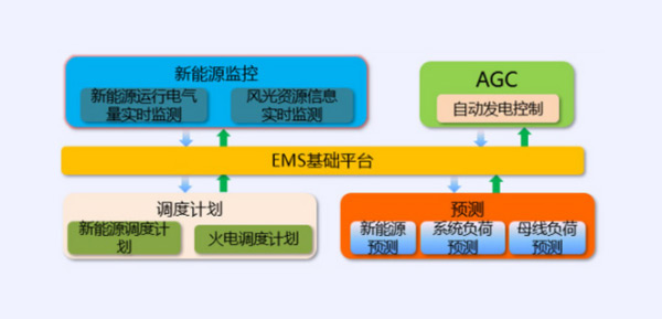 新能源監(jiān)控系統(tǒng)集成新能源監(jiān)控、新能源功率預(yù)測、自動發(fā)電控制AGC、自動電壓控制AVC和傳統(tǒng)EMS等多功能于一體,實現(xiàn)新能源和傳統(tǒng)能源并網(wǎng)控制和協(xié)調(diào)運行。